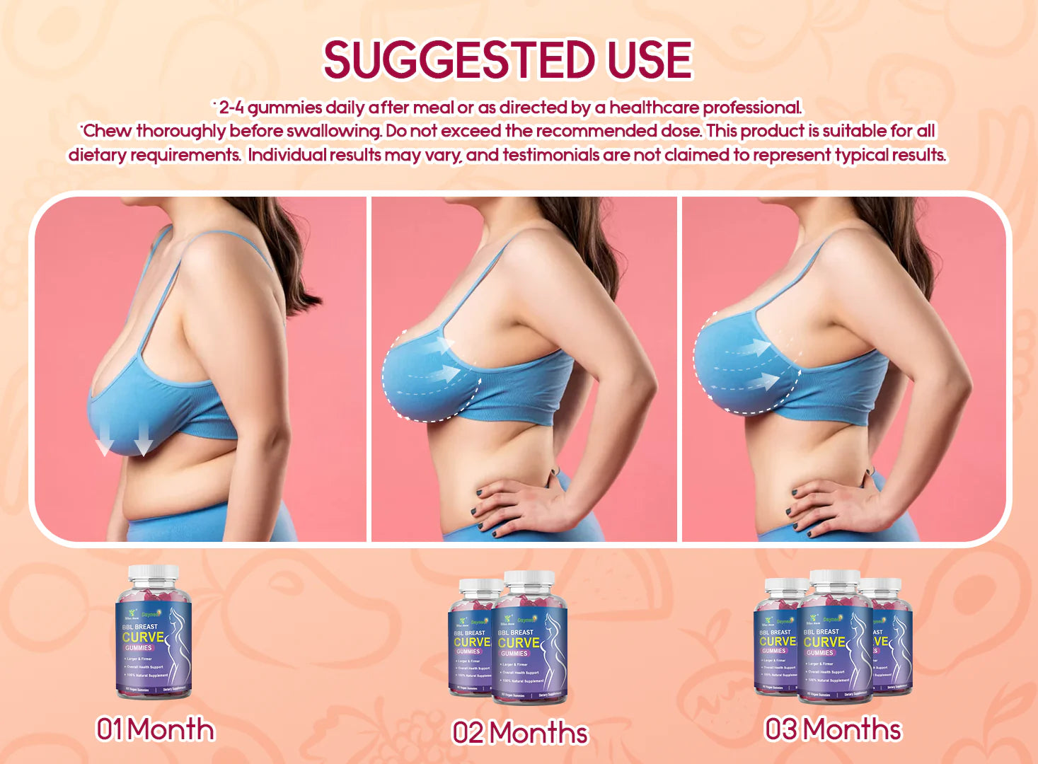 Anyone who wants to enhance their curves and achieve fuller, firmer, and more attractive breasts can benefit from this product. Whether you're naturally flat, sagging or just looking to improve your overall shape, our Breast Curve Gummies can help you achieve the sexy figure you desire.