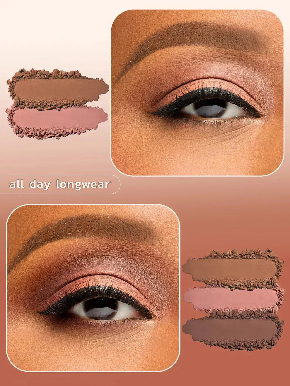 - Oversized base shades ensure you don't run out of your most used shadows