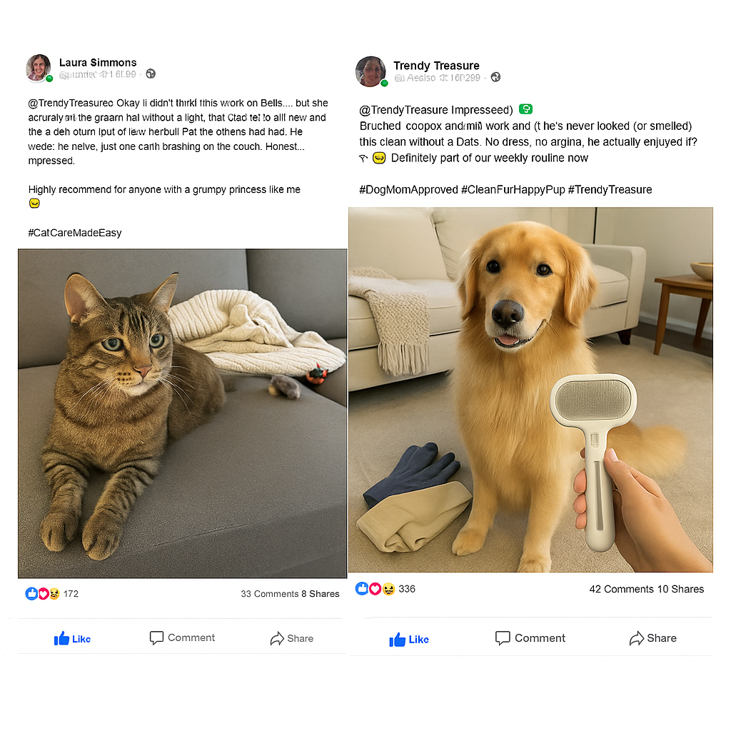 Keep your furry friend looking and feeling their best with the Self-Cleaning Pet Grooming Brush from Trendy Treasure. Designed for dogs, cats, and other small pets, this innovative grooming tool makes shedding control effortless and bath time a breeze.